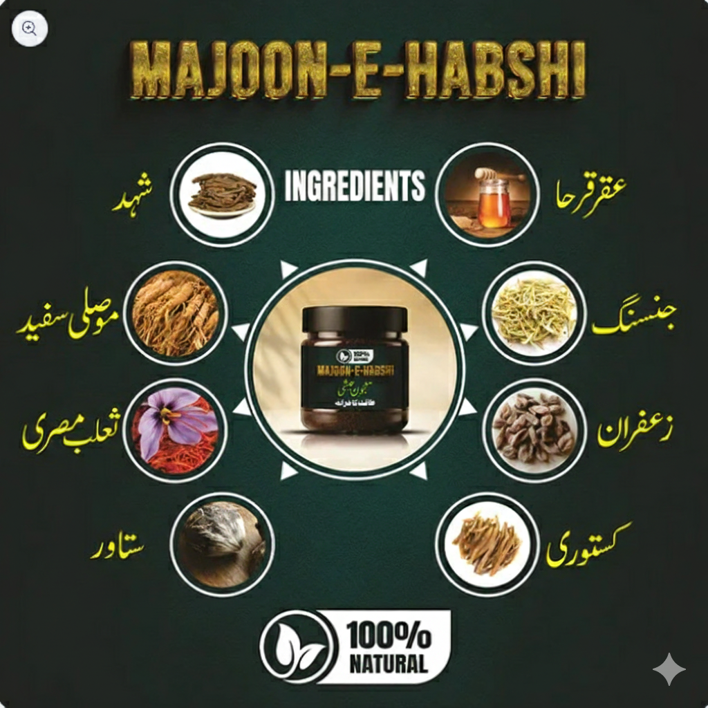 Majoon-E-Habshi ek traditional herbal formulation hai jo apko zindagi me confidence, stamina aur natural energy badhane me madad karta hai. Yeh purani dawaon ka mix hai jo khas taur par un logon ke liye design kiya gaya hai jo apni daily performance ko next level tak le jana chahte hain.